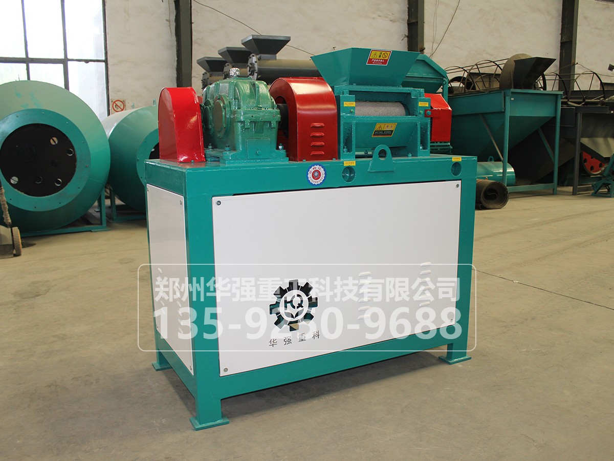 進(jìn)料斗進(jìn)入,經(jīng)高壓輥體相對(duì)擠壓成型,脫模后自流到輥體下部的破碎成型工作室。破碎成型的動(dòng)力是由主動(dòng)壓輥軸的鏈輪經(jīng)鏈條傳動(dòng)給一對(duì)破碎滾軸進(jìn)行相對(duì)運(yùn)